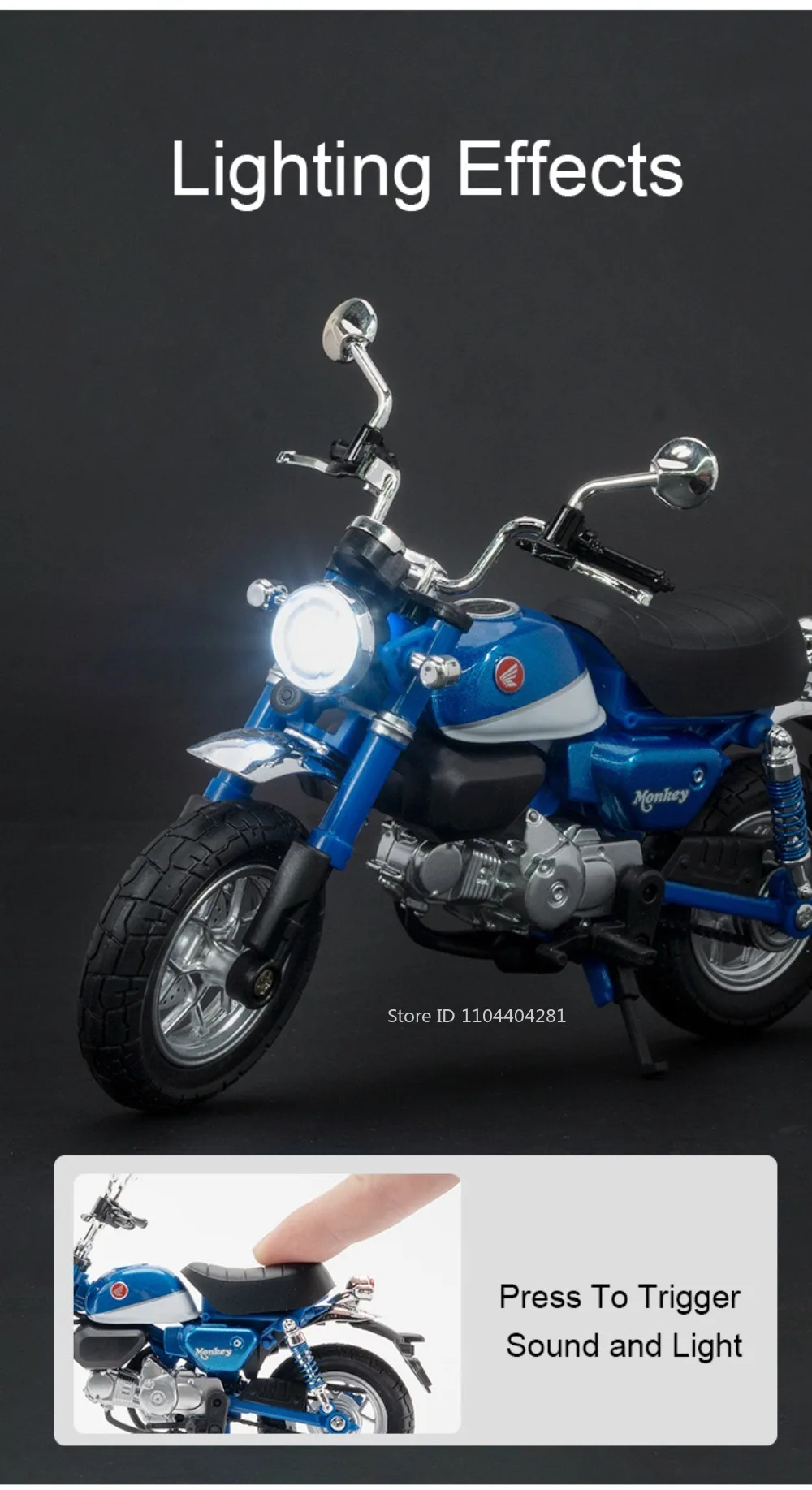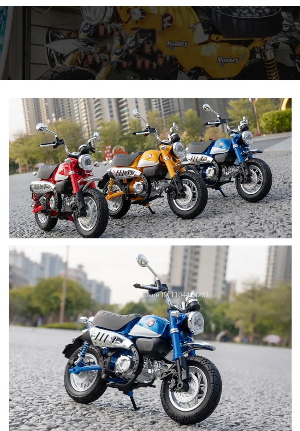 1:12 Honda Monkey CBR1000 Motorcycle Model Diecast Alloy Car Toys Front Wheel Steering Shock Absorption Function Vehice Kid GiftDescription: