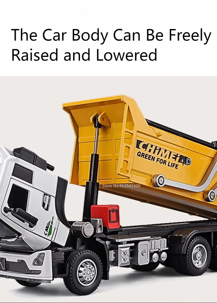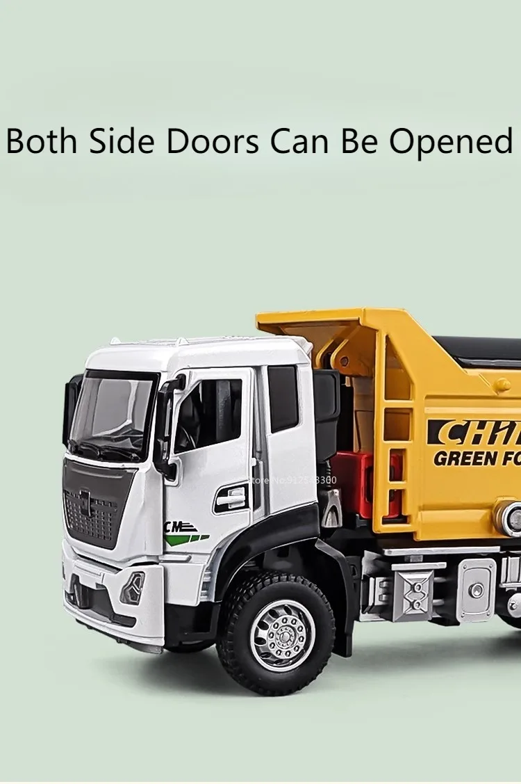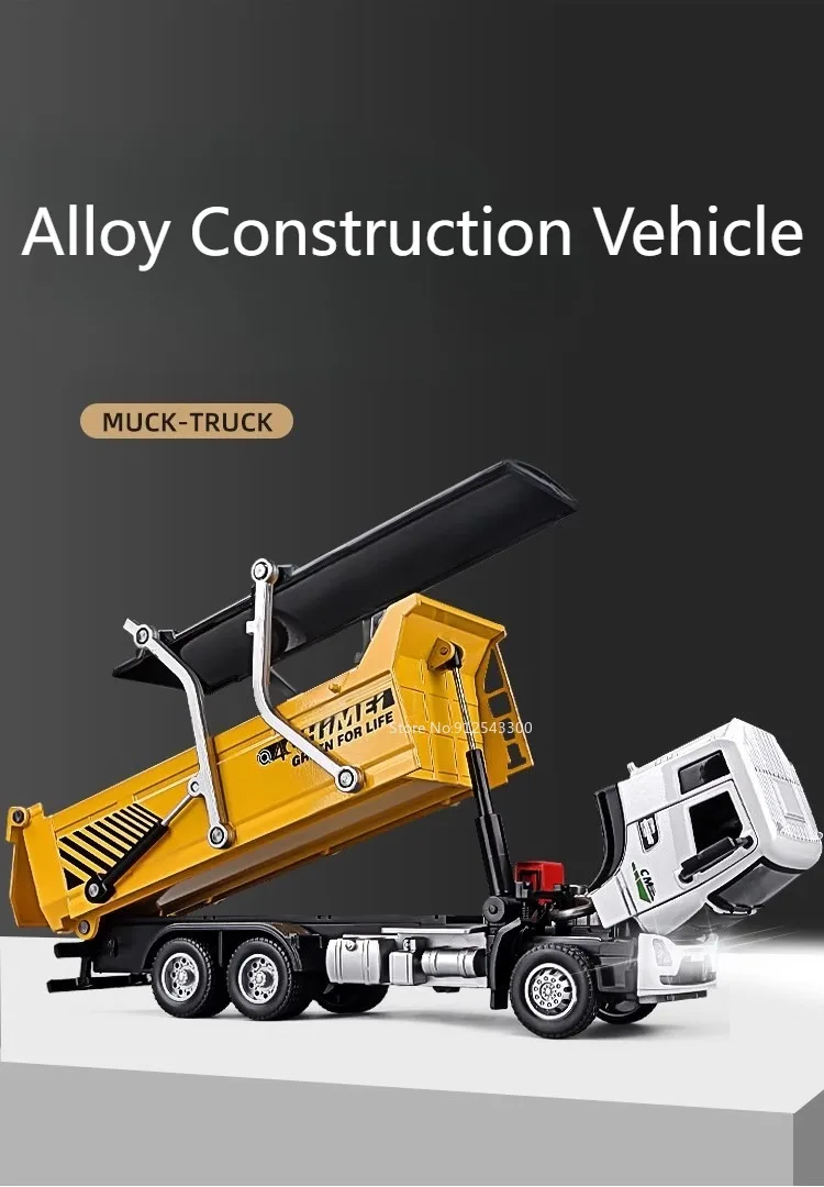 1/32 Muck Transport Truck Model Car Toy Alloy Body Rubber Tire Sound Light Pull Back Engineering Vehicle Models Ornament for Kid