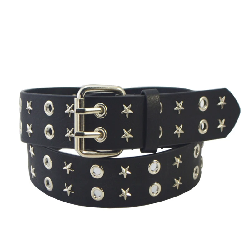 Rivet belt 3-Row Black Metal Pyramid Studded Leather Belt for Men & Women luxury Punk Rock Biker