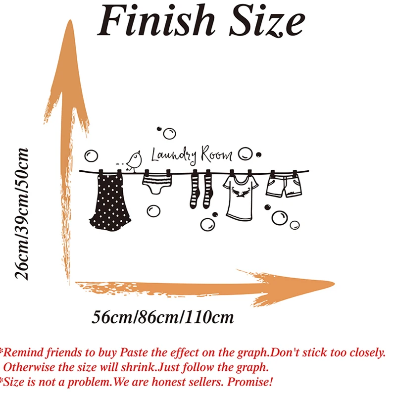 Large Laundry Drying Cloth Wall Sticker Washroom Wash Clothes Bird Bubble Wall Decal Laundry Room Vinyl Decor