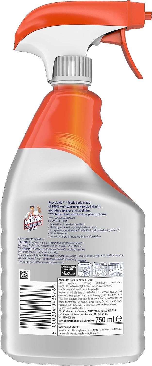 Mr Muscle Kitchen Cleaner Citrus Platinum Antibacterial Kitchen Spray 750ml