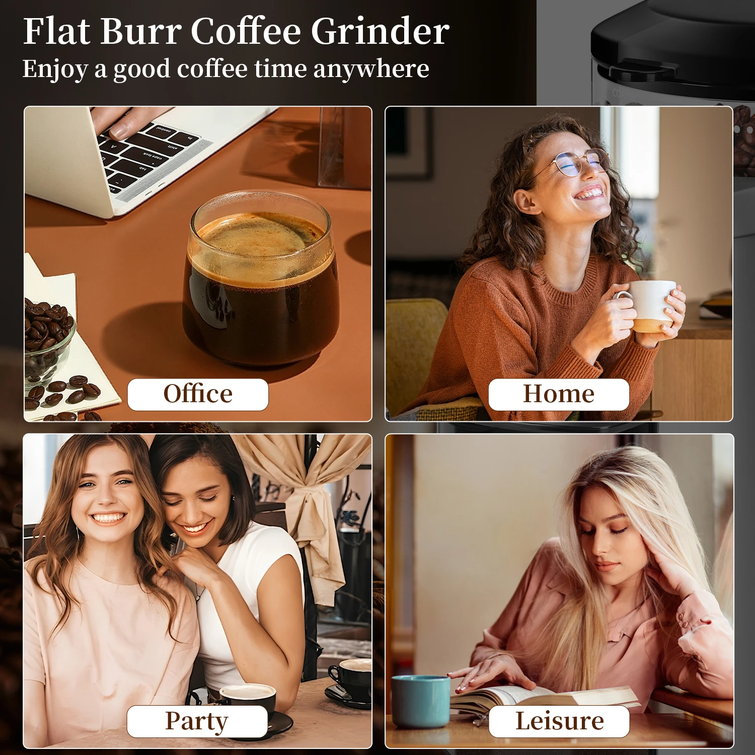 [Flat Burr Coffee Grinder]Enjoy a good coffee time anywhere.